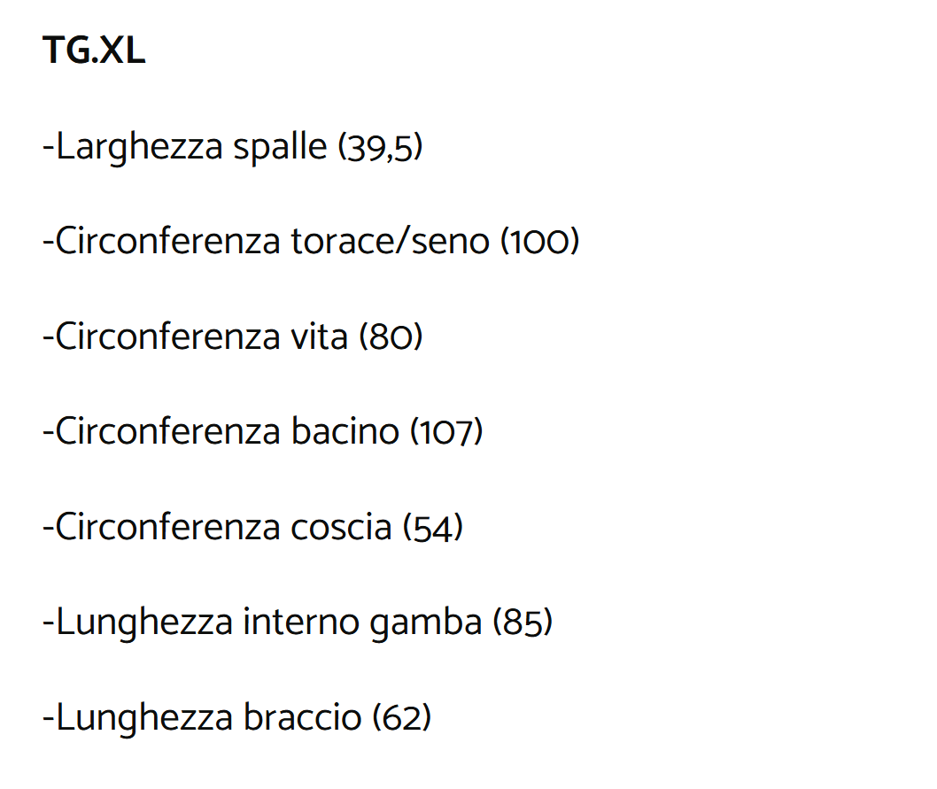 Adatto a tutti i tipi di corporatura – dai 36 ai 46 anni