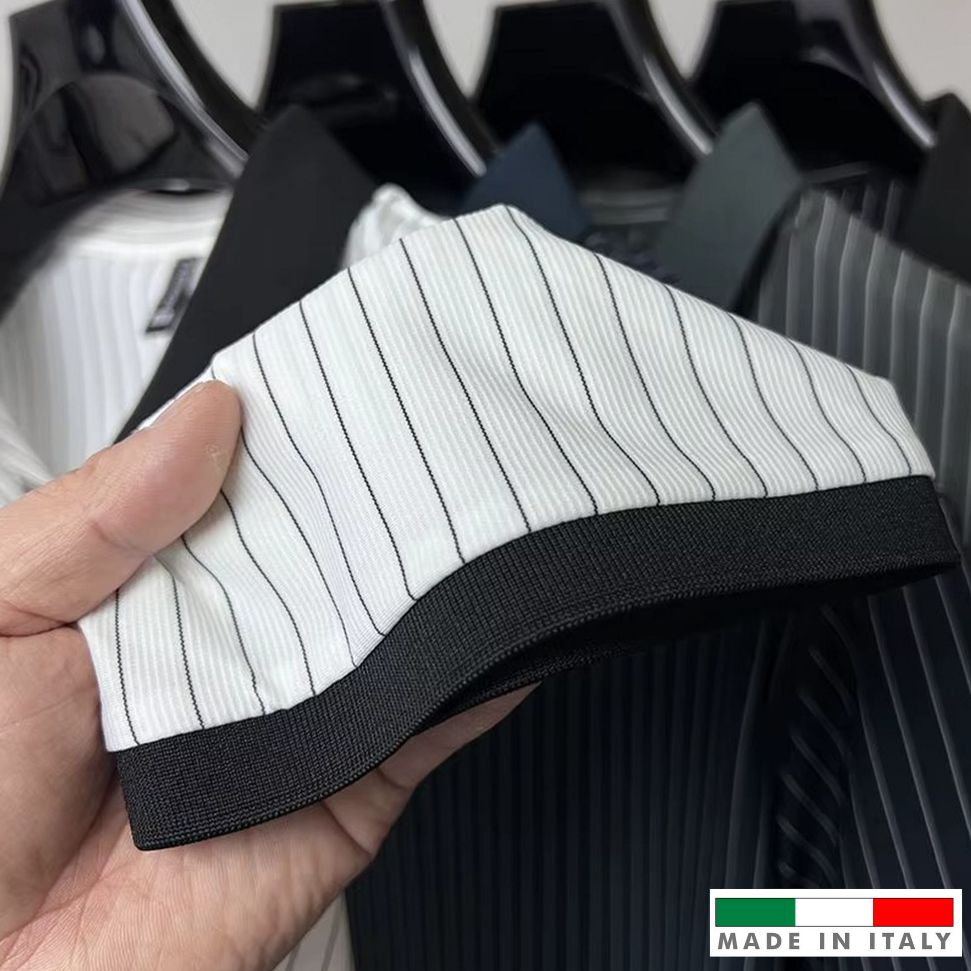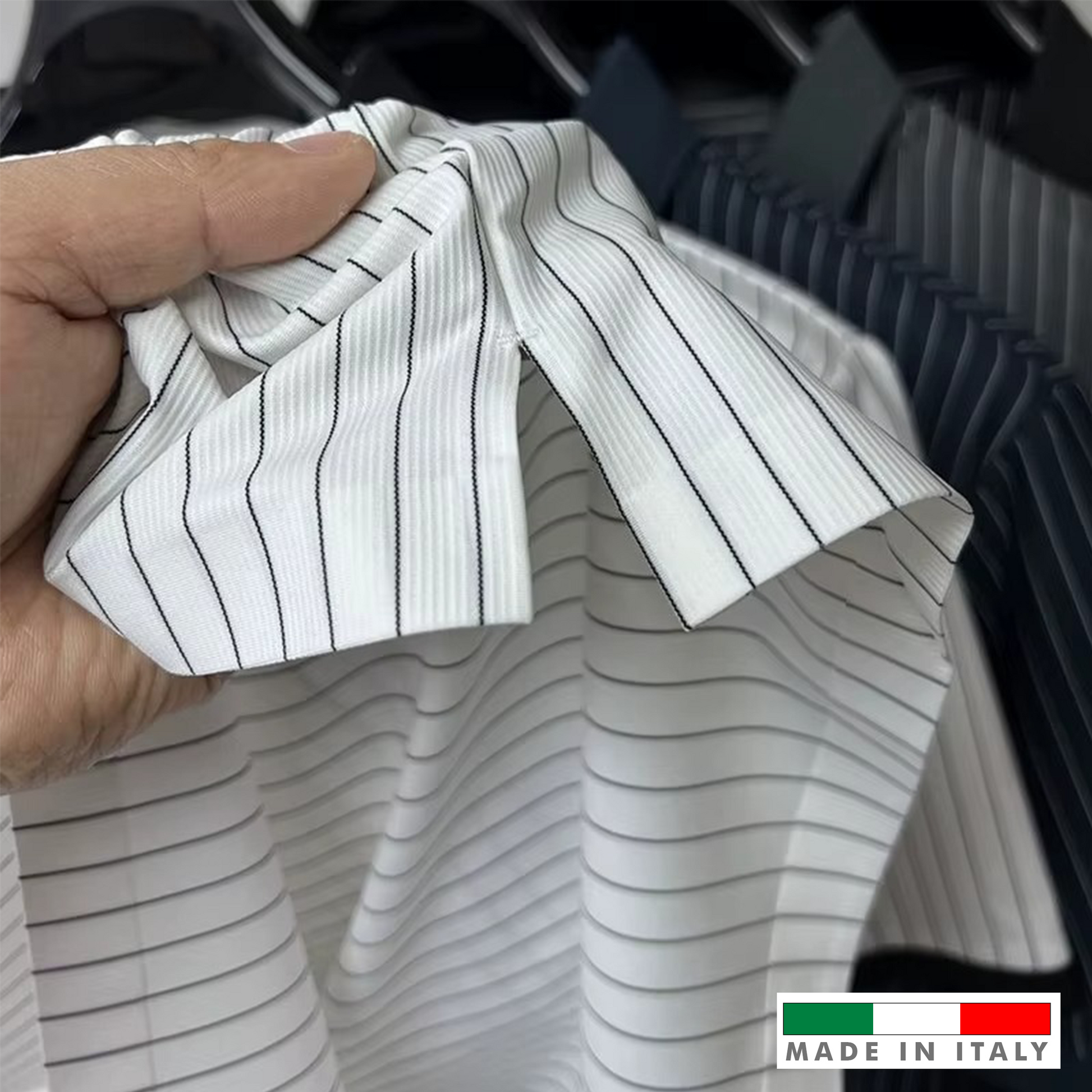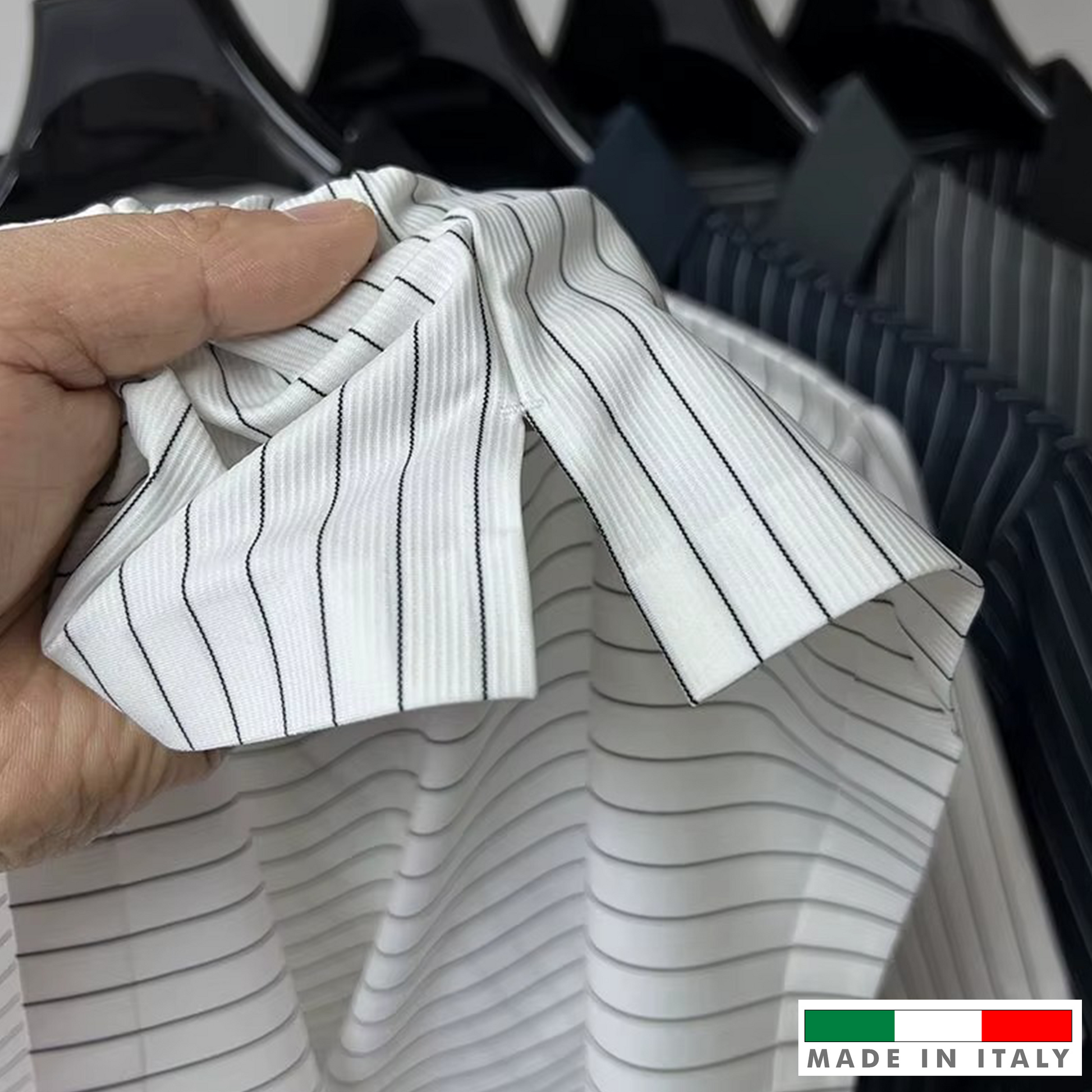La Polo Vittorio Maestro trasforma le righe in sofisticatezza. Dal colletto netto al contrasto pulito dei polsini, ogni dettaglio ravvicinato riflette raffinatezza. Il tessuto leggero e resistente alle pieghe ti mantiene elegante e comodo, mentre la qualità anti-pilling assicura che rimanga raffinata nel tempo. Questa è una perfezione su misura a cui non devi pensare — è incorporata nel capo.